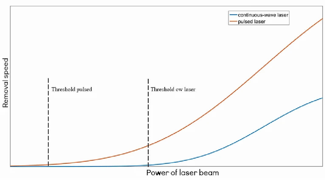 - Plasma shock effect: High peak power lasers generate micro-plasma that breaks the adhesion between contamination and substrate.