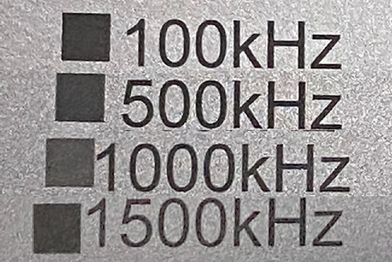 Through testing, mid-range frequencies of 200–800 kHz achieved the darkest and most uniform black marks without damaging the surface. This demonstrates the importance of balancing pulse energy and repetition rate for optimal results.